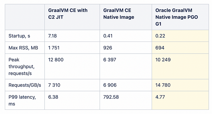GraalVM 과 마찬가지로 Proejct CRaC를 사용하면 소규모 서버에서도 수십 밀리초의 즉각적인 시작으로 애플리케이션을 0으로 스케일할 수 있다. 이는 일반 JVM 콜드 스타트보다 50배 이상 빠르며 GraalVM 기본 이미지와 유사하다.