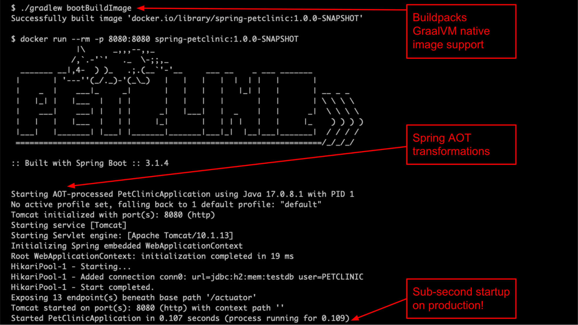 GraalVM 네이티브 지원을 계속하고 있으며 Spring AOT를(Ahead of Time) 사용하여 최적화된 컨테이너 이미지를 구축한다. (JVM 배포가 필요하지 않다.)