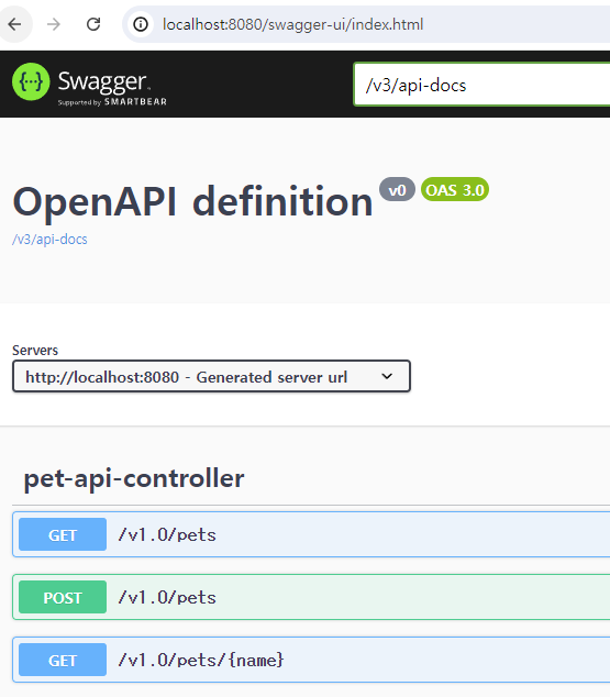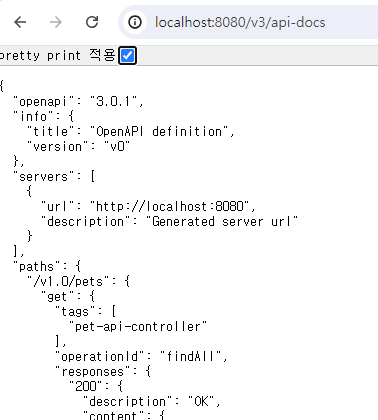 애플리케이션을 실행하면 Swagger-ui와 openapi 스팩을 확인할 수 있다.