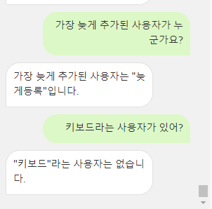 - 실제 '키보드'라는 이름의 사용자는 DB에 없지만 AI는 '키보드'라는 이름의 사용자가 있다고 응답한다.