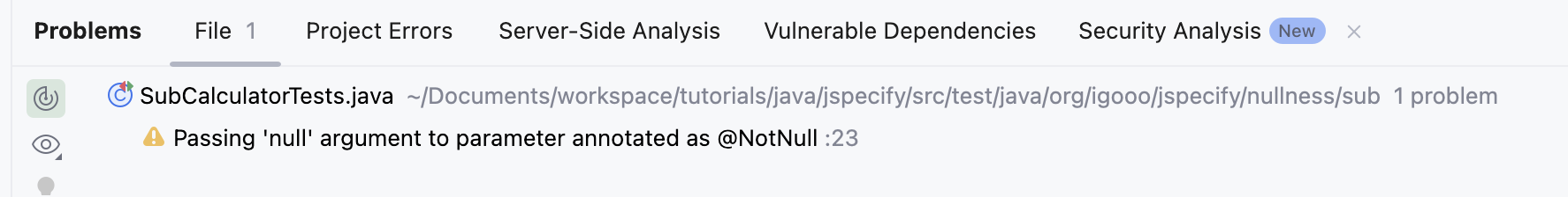 추가적으로 위에서 테스트했던 nullness 패키지 하위로 sub라는 패키지를 만들어서 동일하게 테스트를 진행해 보자.