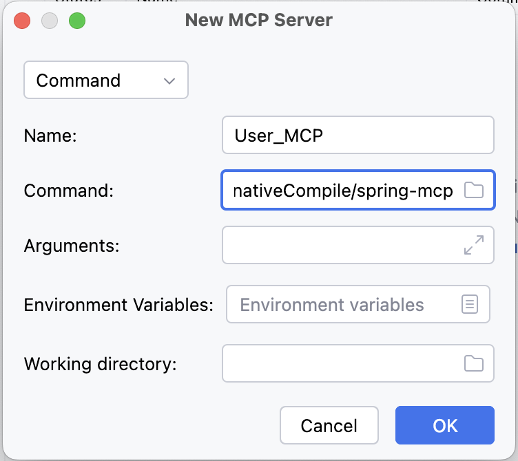 아래 예제에서는 MAC에서 Spring Native 빌드를 사용하여 MCP 서버를 빌드하고, 빌드된 바이너리를 사용하여 IntelliJ IDEA에 연동한다. 윈도에서도 동일하게 사용가능하다.